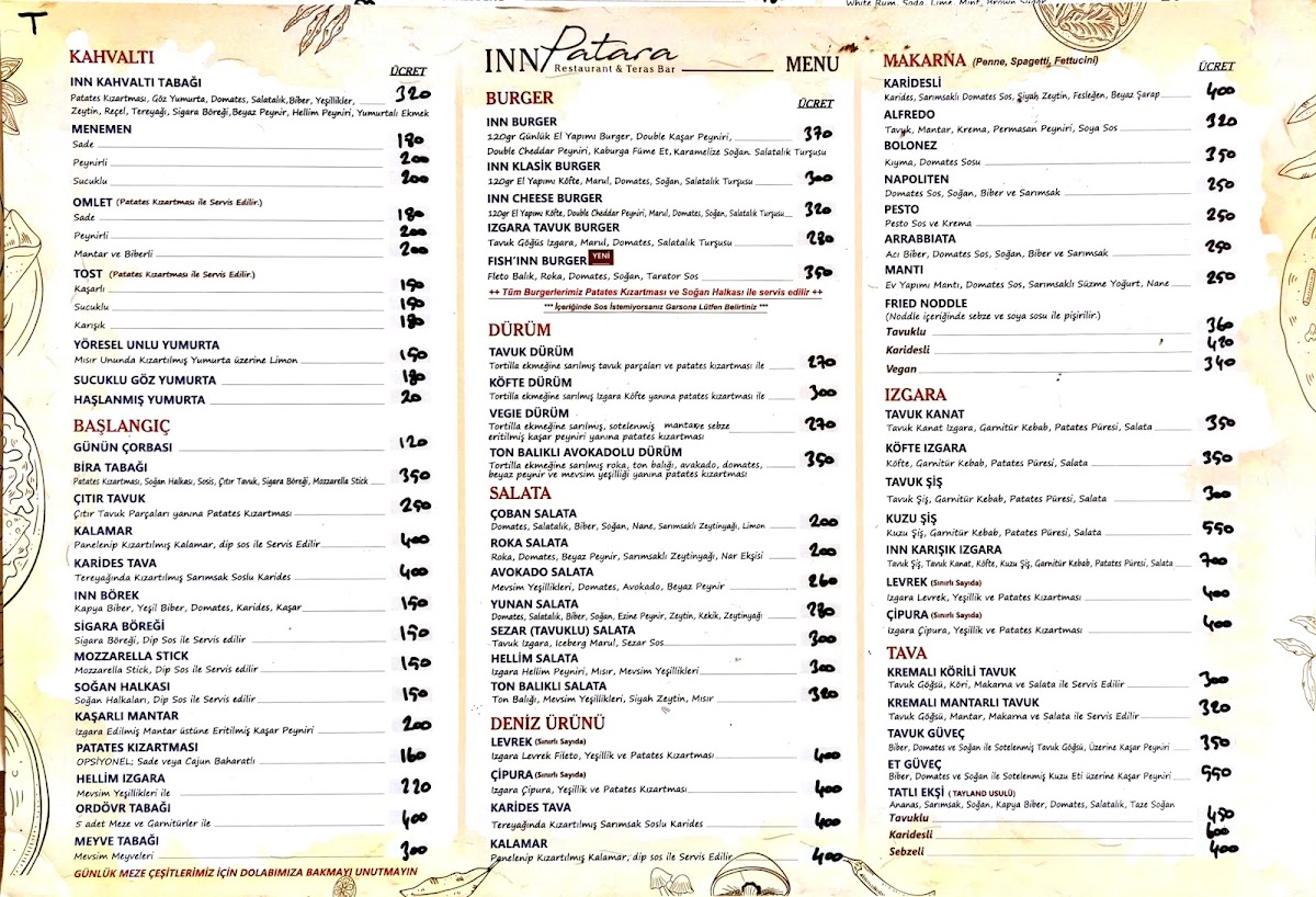 Welcome to INN ᴾᴬᵀᴬᴿᴬ Terrace, a vibrant culinary gem located in the heart of Gelemiş, Kaş, Antalya. This charming eatery effortlessly marries a lively atmosphere with a mouthwatering menu, making it a must-visit for food enthusiasts.